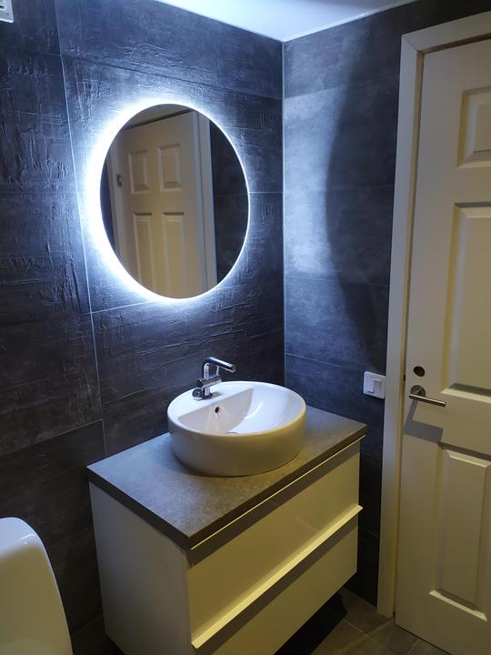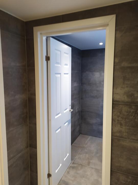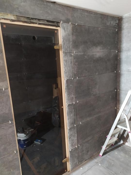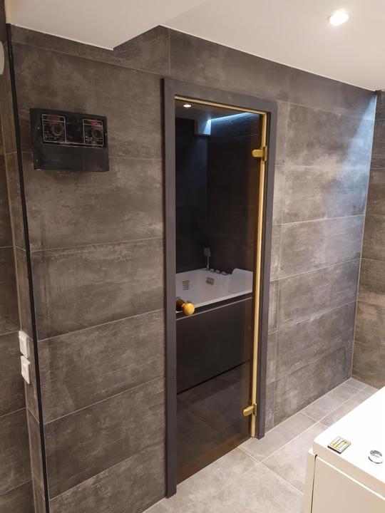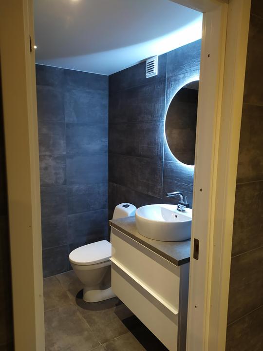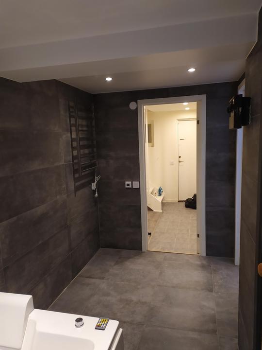 En stor badrumsrenovering med golvvärme, spotlights, ny klinker & kakel, spabad & ny badrumsinredning.